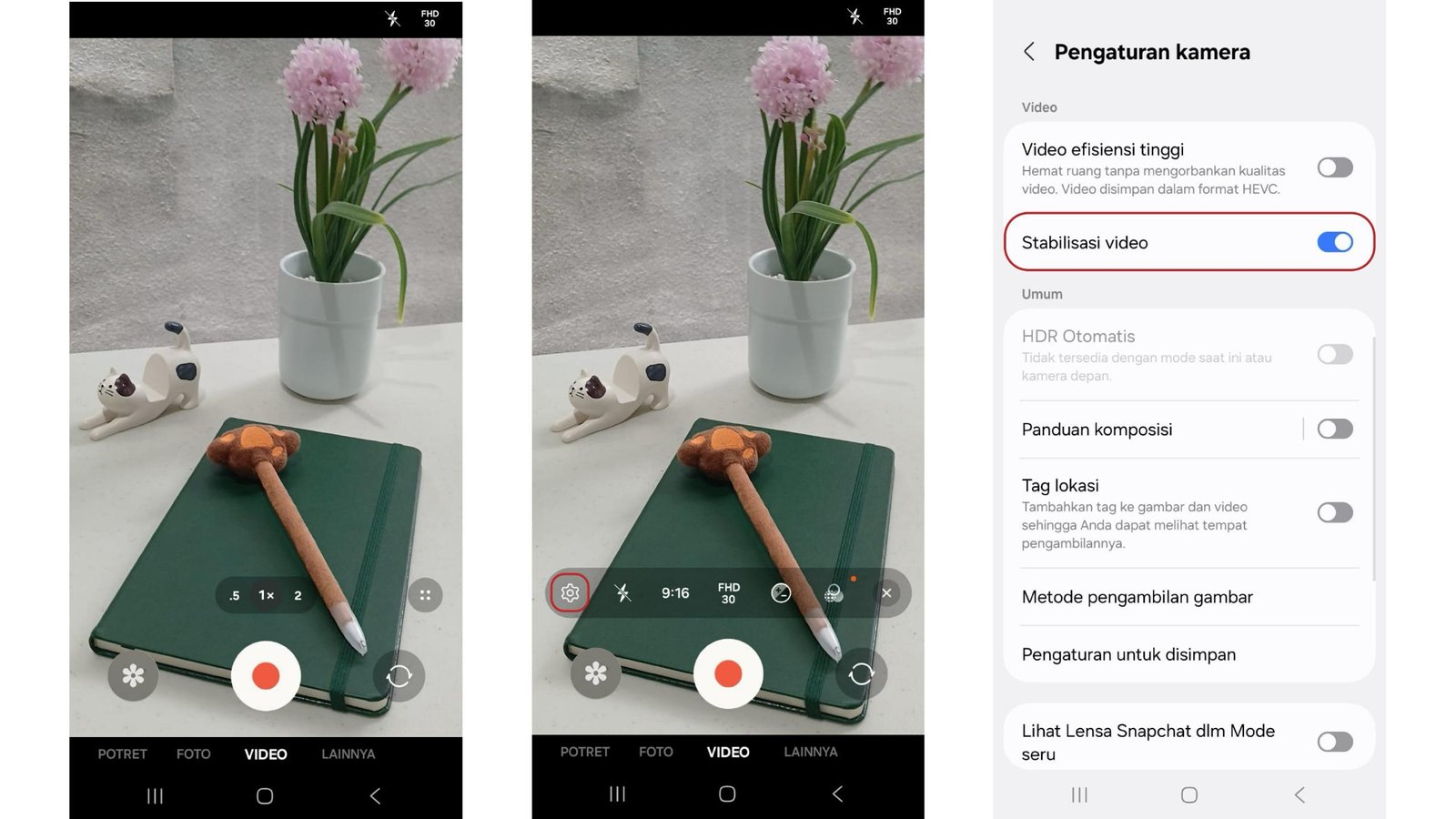 Aktifkan Stabilisasi Video untuk hasil konten yang lebih tajam dan stabilBagi kreator dan affiliator, kualitas visual adalah kunci membangun kepercayaan audiens.