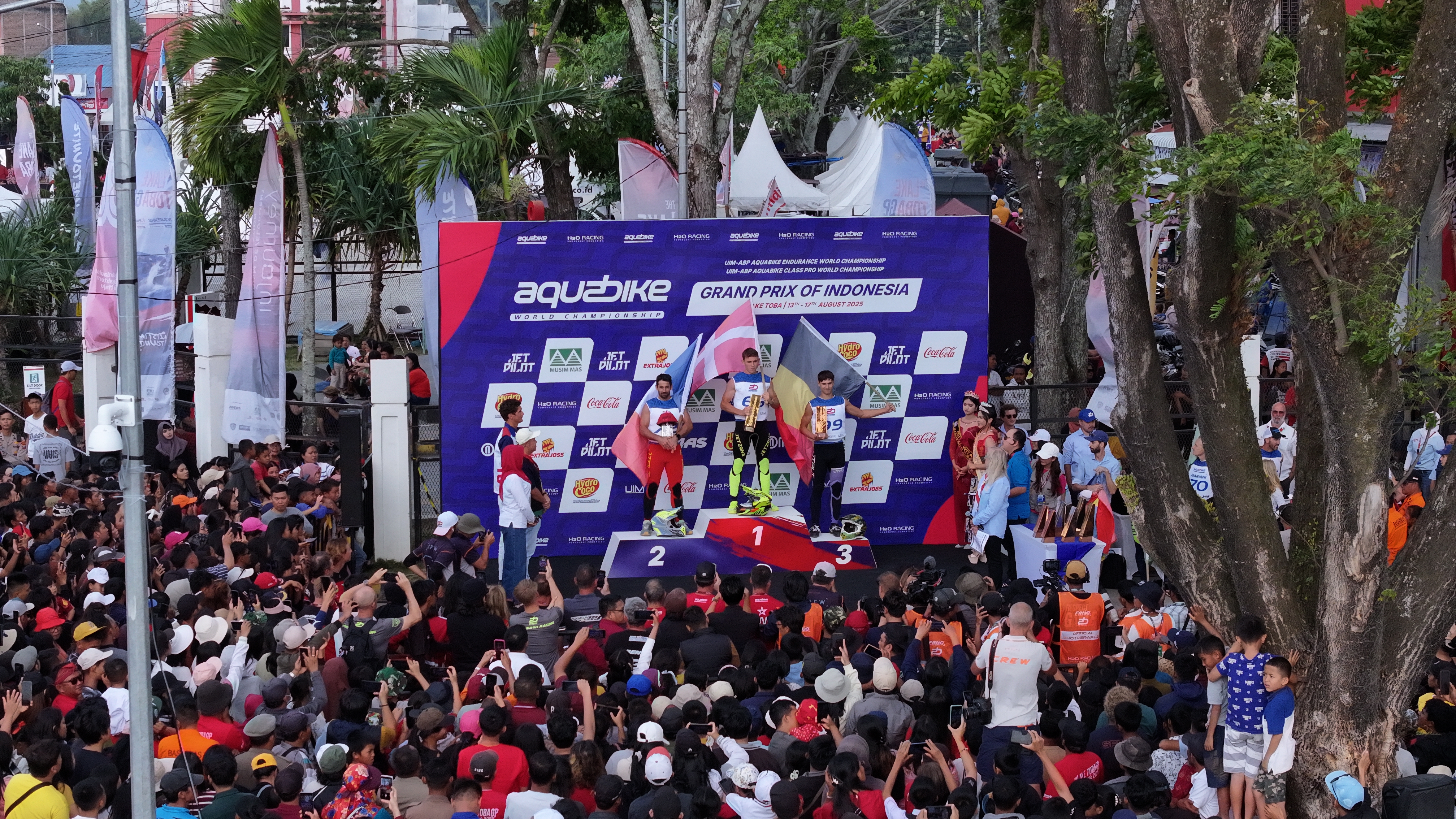 ITDC) sebagai bagian dari InJourney menghadirkan atmosfer yang menyatukan semangat kemerdekaan dengan prestasi olahraga global.Perayaan Hari Kemerdekaan digelar sejak pagi di Lapangan Sisingamangaraja, Balige, dengan penuh khidmat dan semangat kebangsaan. Kegiatan diawali dengan penampilan tari etnik khas Sumatera Utara dan dilanjutkan pengibaran bendera Merah Putih oleh Pasukan Pengibar Bendera (Paskibra), diiringi lagu kebangsaan Indonesia Raya yang dinyanyikan bersama para tamu undangan dan masyarakat. Penonton yang memadati area tepian danau semakin antusias ketika 17 bendera merah putih dikibarkan dalam parade lap oleh pembalap-pembalap internasional dari ajang Aquabike World Championship.Organizing Committee Chairman The Lake Toba GP/Direktur Operasi