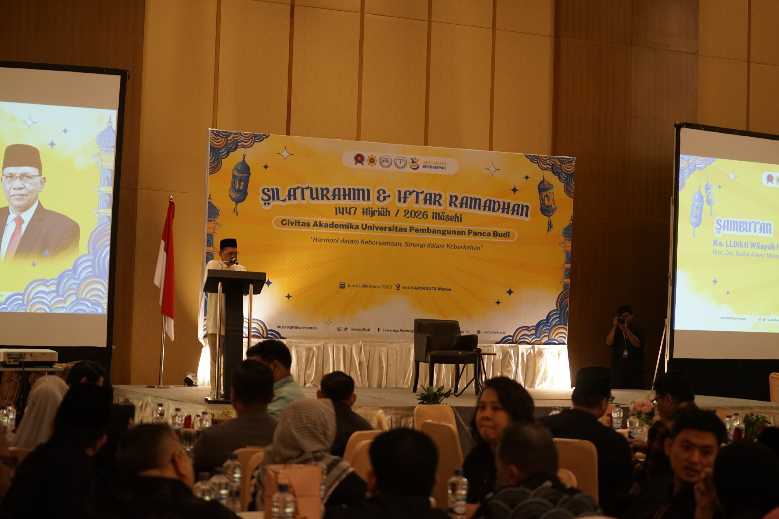 Medan – Dalam suasana penuh keberkahan bulan suci Ramadhan 1447 H, Universitas Pembangunan Panca Budi (UNPAB) menggelar kegiatan Buka Puasa Bersama (Iftar Ramadhan) yang dihadiri civitas akademika serta sejumlah tamu kehormatan dari berbagai institusi. Kegiatan yang berlangsung di Aryaduta Hotel Medan pada Jumat (6/3/2026) ini menjadi momentum mempererat silaturahmi, memperkuat nilai spiritual, serta membangun kolaborasi antara perguruan tinggi, pemerintah, dan berbagai mitra strategis.