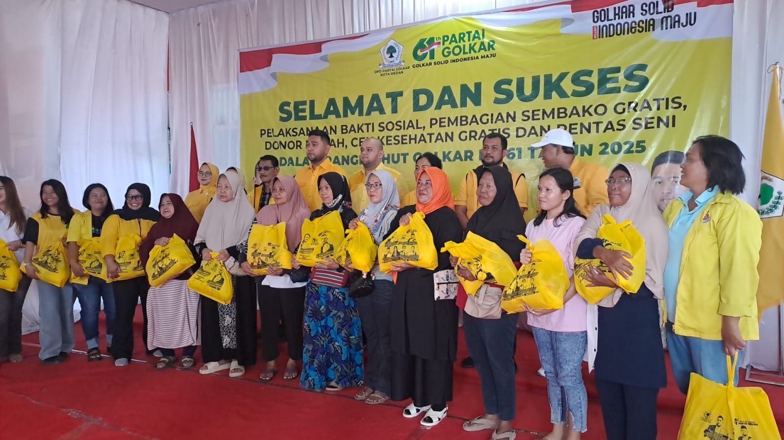 Medan – Dalam rangka menyambut Hari Ulang Tahun (HUT) ke-61, Partai Golkar Kota Medan menggelar kegiatan bakti sosial di Jalan Jermal XI, Kecamatan Medan Denai, Sabtu (18/10/2025). Kegiatan ini meliputi pembagian paket sembako, pemeriksaan kesehatan gratis, dan donor darah bagi masyarakat.